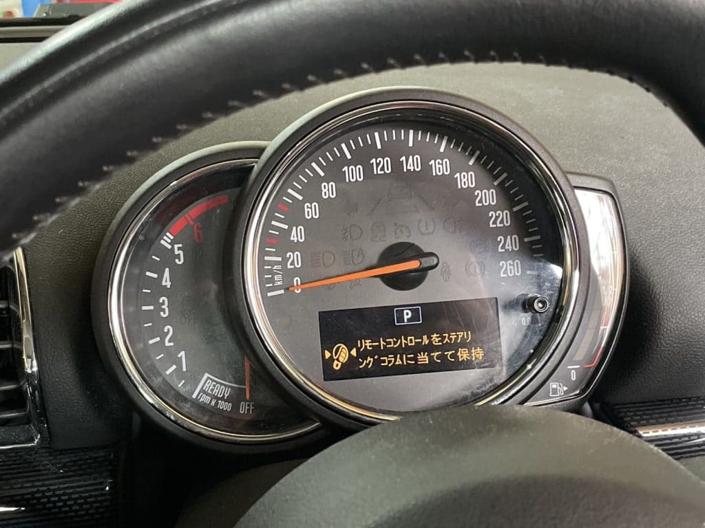 MINIの車両セキュリティシステムがスマートキーを認識すると警告灯が消え、正常にエンジンスタートが可能になります。