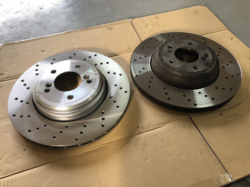 新しいブレーキディスクローター(左)と古いブレーキディスクローター(右)の比較